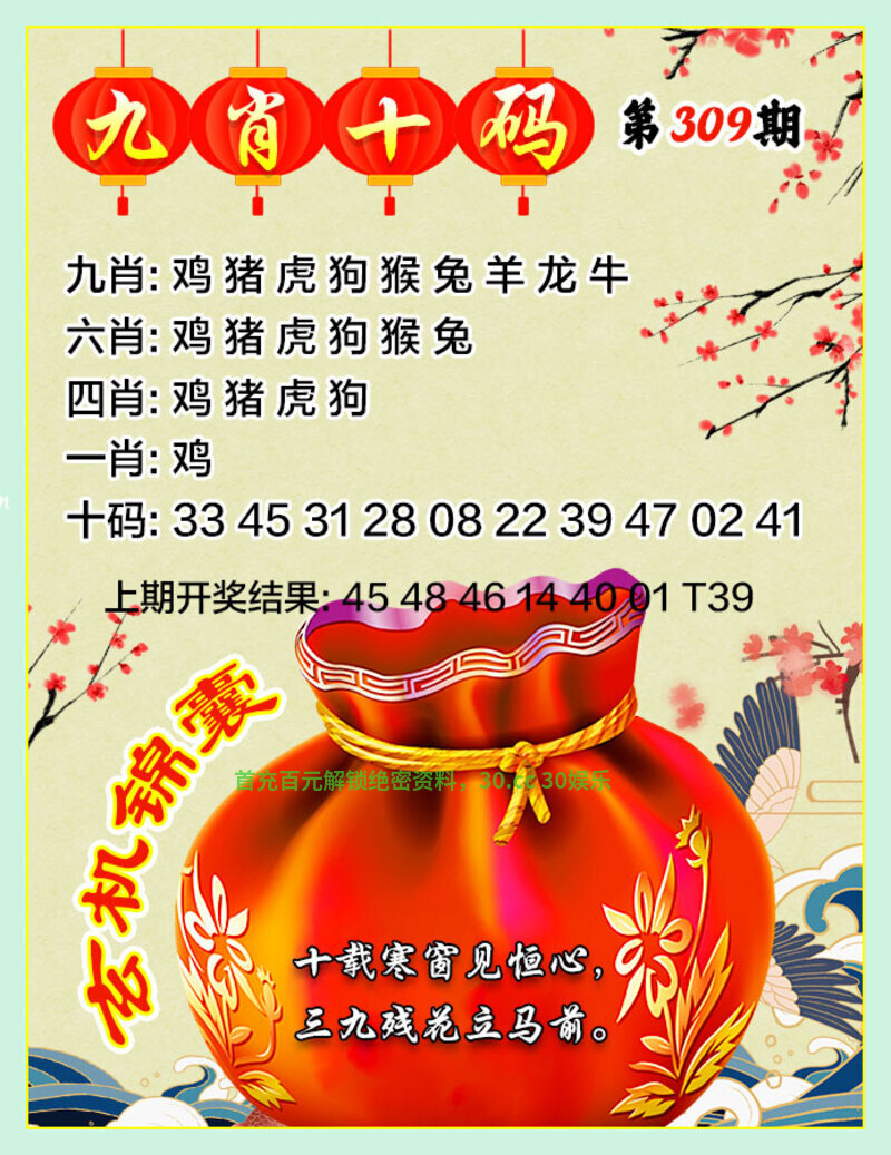 | 308期:单双两肖【双肖+猪鸡】开:兔39错 |